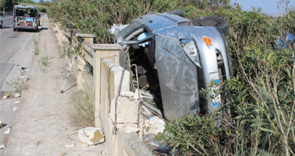 Si ribalta con la sua "Focus" finendo oltre il muretto di recinzione