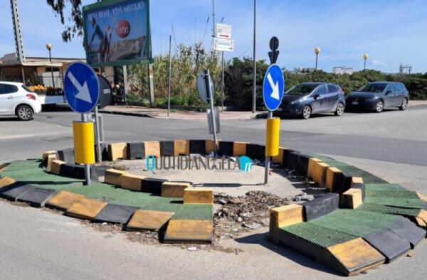 Giardinelli, rotatoria stradale pericolosa: new jersey divelto e senza manutenzione