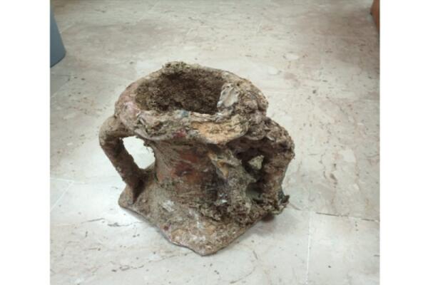 Parte superiore di un'anfora ellenistica ritrovata nei fondali, scoperta a Montelungo
