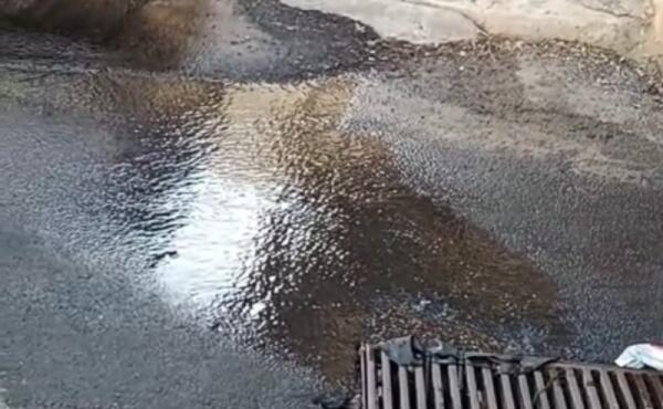Acqua in strada in via Diaz, perdita va avanti da settimane