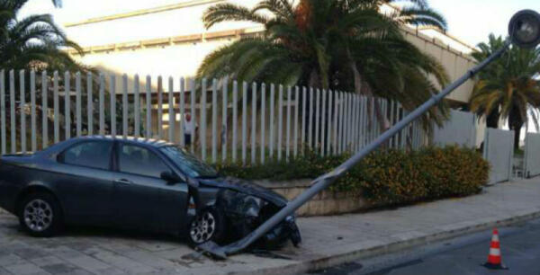 Un'Alfa contro un palo dell'illuminazione, paura davanti al museo: il conducente è rimasto ferito