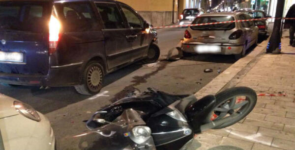 Violento scontro tra uno scooter ed un'auto stanotte in via Vasari, centauro in ospedale