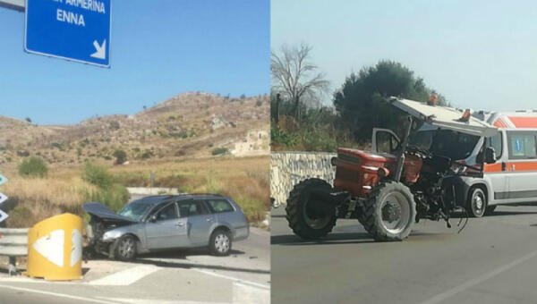 Scontro tra auto e trattore sulla 117 bis, violento impatto e traffico rallentato