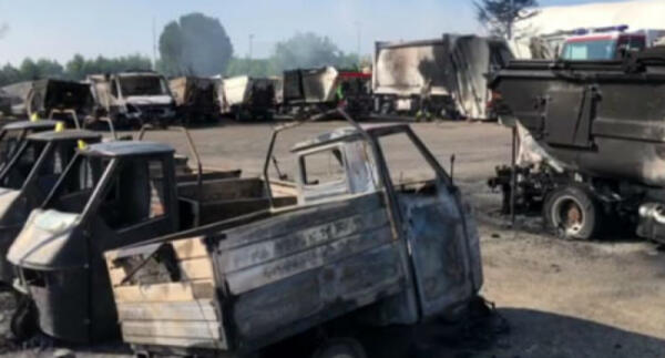 I mezzi di Tekra distrutti dal fuoco, il rogo è doloso: attentatori ripresi dalle telecamere