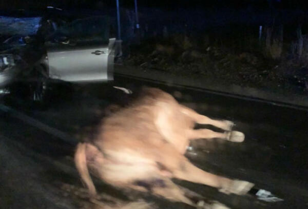 Violento schianto sulla Gela-Catania, auto impatta contro mucca