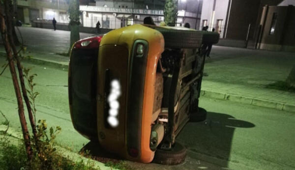 Un'auto ribaltata, ferite due persone: l'incidente nei pressi del commissariato di polizia