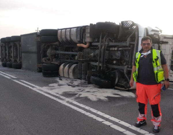 Tir si ribalta sulla 626, ferito salvato da operatore ambulanze