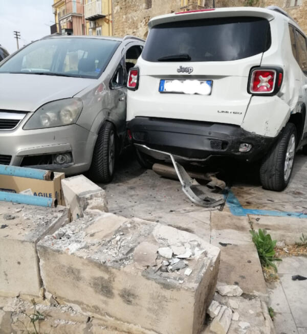Auto contro vetture parcheggiate in piazza Calvario, danneggiato anche muretto