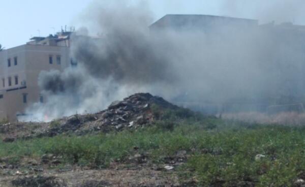 Pneumatici in fiamme nell'area a ridosso del tribunale, rogo sviluppato in pochi minuti