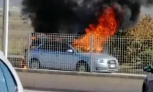 Auto in fiamme, era in transito: forse un guasto, scattati i soccorsi