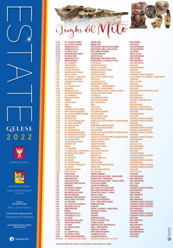 Non perderti nessuna novità! Segui questa sezione per essere sempre informato sulle date, gli orari e le location degli eventi più attesi a Gela e dintorni.