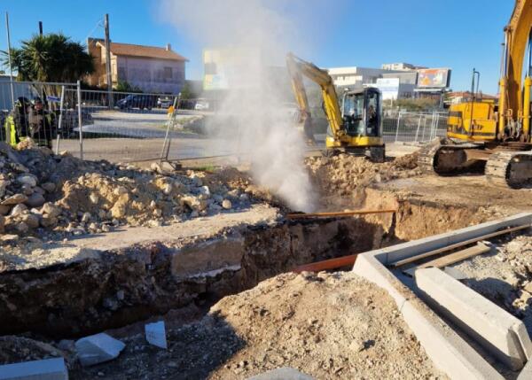 Escavatore buca tubo del gas a Modica, chiuso tratto statale 115