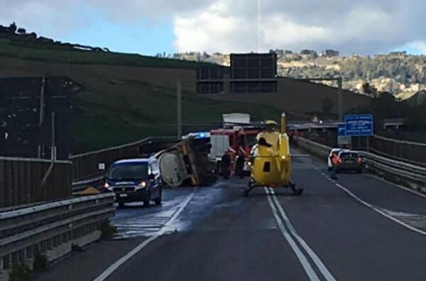 Autobotte si ribalta sulla Gela-Caltanissetta, gravissimo il conducente