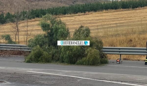 Vento e pioggia, alberi in strada sulla Gela-Caltanissetta