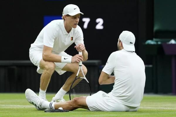 Sinner ai quarti di Wimbledon, Dimitrov si ritira al terzo set